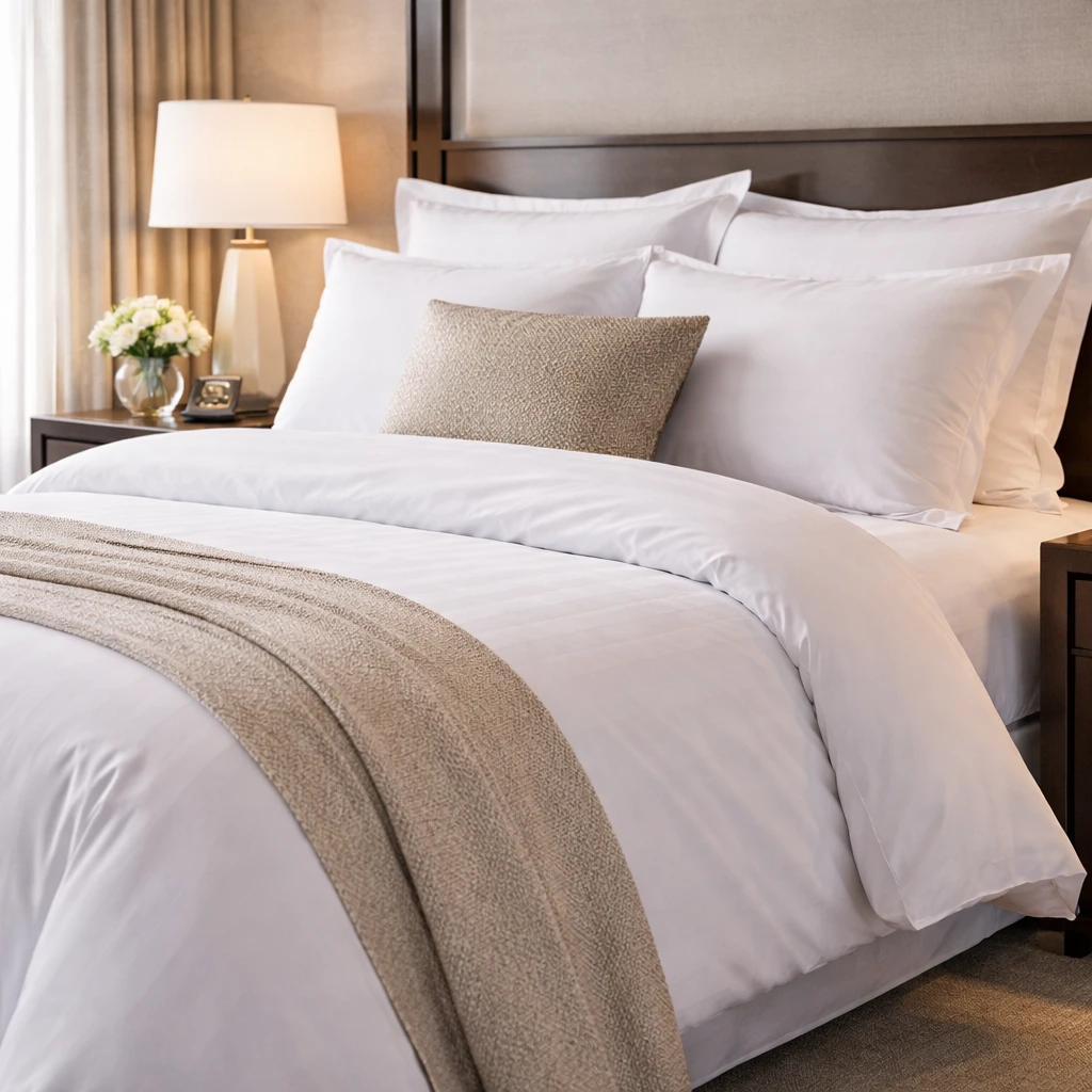 - Custom Hotel Name & Logo Room Amenities Bed Runners & Cushions