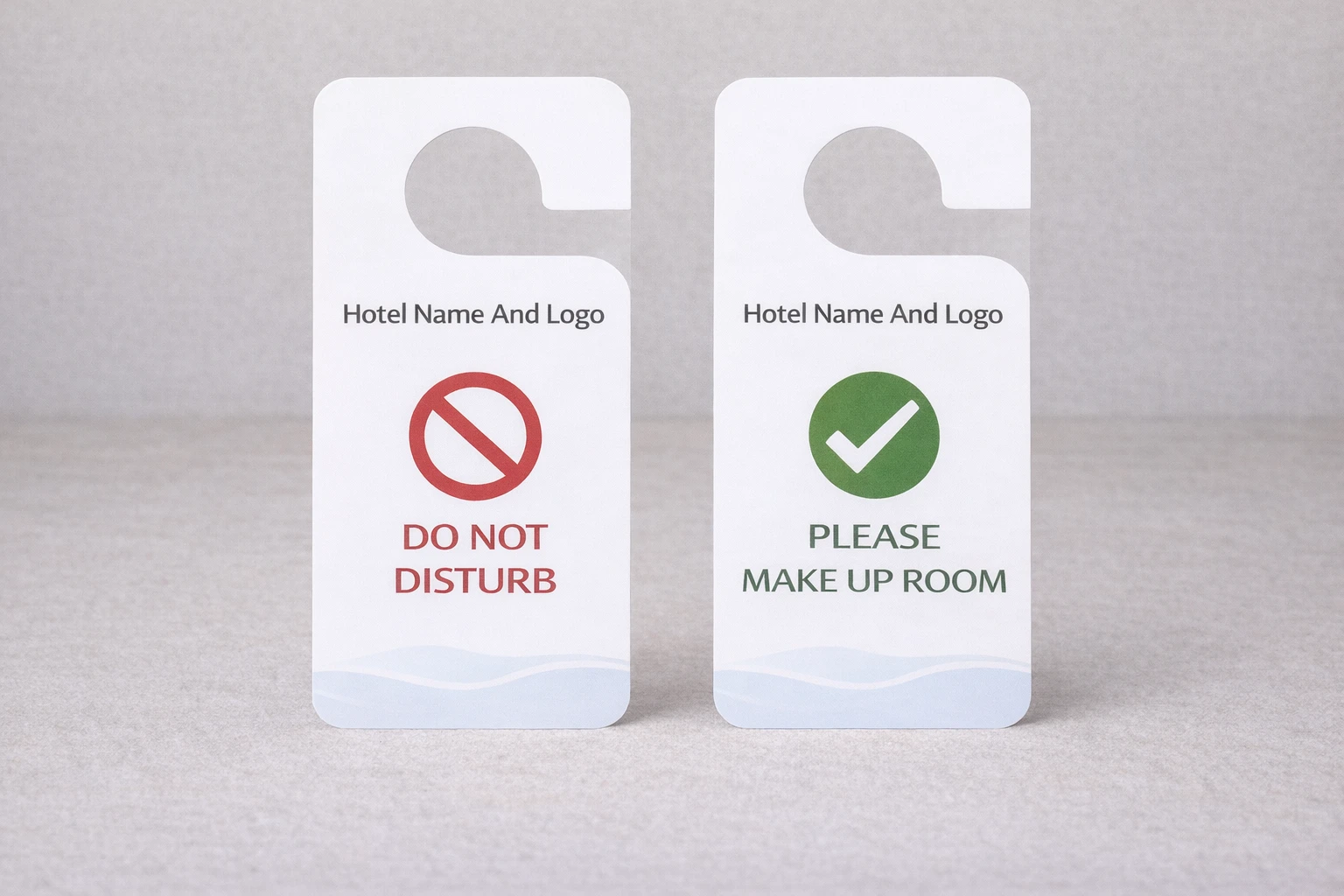 - Custom Hotel Name & Logo Room Amenities - Door Hangers (DND / Make-up Room)